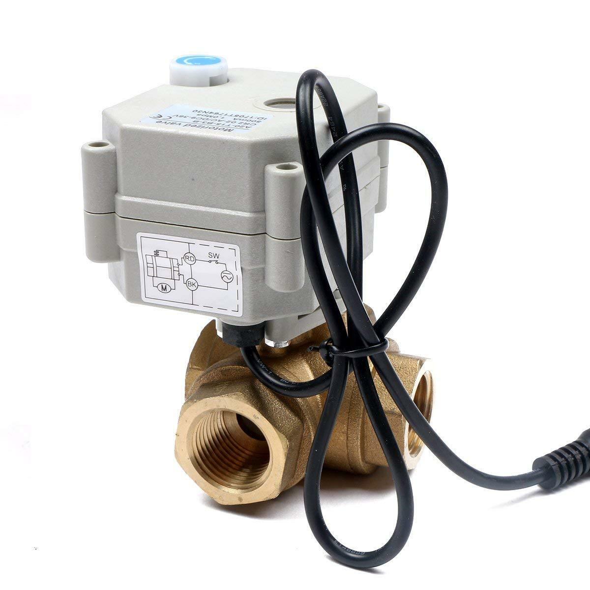 Esta válvula de bola motorizada de ½ "y 3 vías viene con un adaptador AC-DC y una función de retorno automático vital. Es una excelente opción para cualquier proyecto de automatización industrial o doméstica.