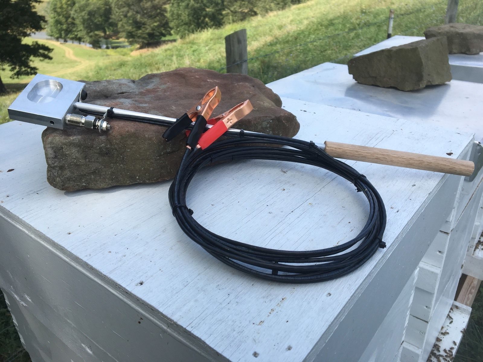 Vaporizador de ácido oxálico diseñado para el tratamiento rápido y efectivo de los ácaros Varroa Destructor en colonias de abejas melíferas. Funciona tan bien como los vaporizadores duplican el precio. Este vaporizador está hecho de aluminio de grado aeronáutico con un mango de roble y 10 pies de cable de calibre 12.